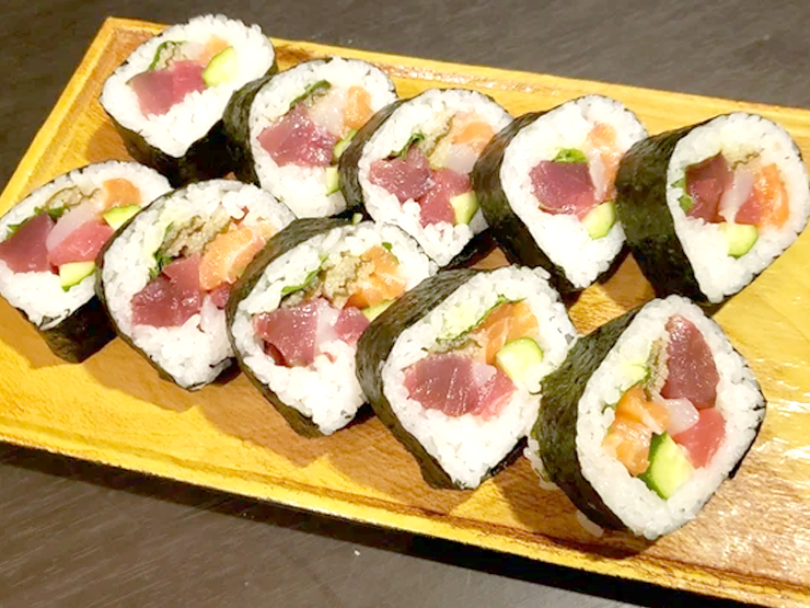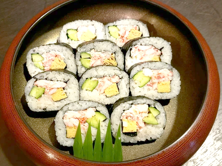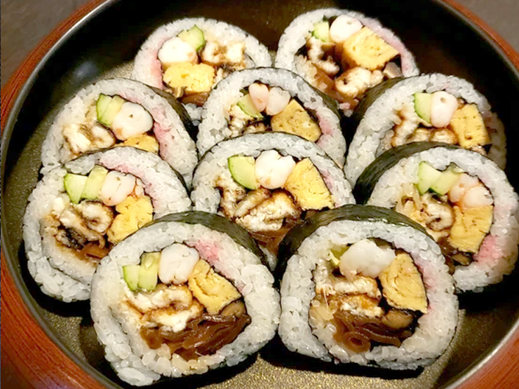 太巻に、えび、しいたけ、穴子が入ったデラックス巻です