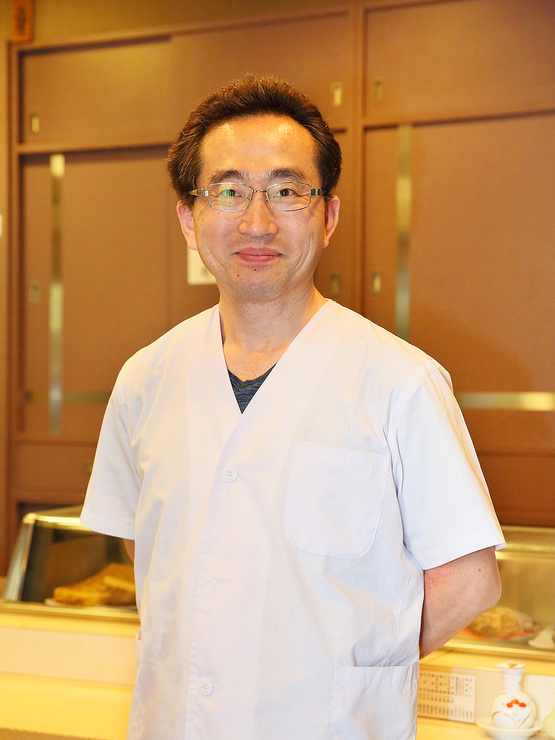 芝田 博士 1973年、愛知県生まれ。サラリーマンとして順風満帆な社会人生活を送る。かねてから付き合いをしていた雄二氏の長女と結婚。2004年ごろより、空いた時間に配達を手伝うようになり、一念発起して転職することに。調理経験は少なかったものの、次第にキッチンの手伝いにも参加。今では『だし巻玉子』を一任され、毎日腕を揮っている。先に修業を始めていた義兄弟・慎也氏の弟弟子として、雄二氏の下で研鑽を積む。